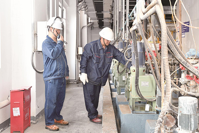 11月24日,成物智服化檢分公司鈦業(yè)二項(xiàng)目部職工沈興順與劉文臣(右)正在檢查設(shè)備。今年以來(lái),該分公司通過(guò)強(qiáng)化設(shè)備數(shù)據(jù)、狀態(tài)監(jiān)測(cè),提升設(shè)備可開(kāi)動(dòng)率,增強(qiáng)預(yù)防性維護(hù)工作的整體成效;嚴(yán)格做好定修周期管理,提高維護(hù)工作的規(guī)范性與針對(duì)性,確保了檢修質(zhì)量客戶滿意度的顯著提高。